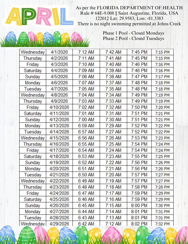 Pool Sunrise/Sunset Calendar